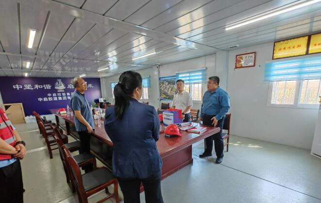 9月24日,膠州市人力資源和社會保障局局長孫正永一行,赴我公司承建的青島幼兒師范高等??茖W(xué)校建設(shè)工程(三期)項目二期工程就保障農(nóng)民工工資支付工作進行調(diào)研,青島幼兒示范高等??茖W(xué)校相關(guān)校方領(lǐng)導(dǎo),中啟膠建集團有限公司黨委書記、董事長、總經(jīng)理郭道盛陪同調(diào)研。