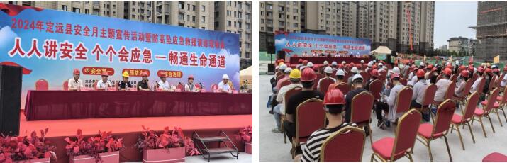 為進一步加強建筑施工現(xiàn)場安全管理,預防和減少安全事故發(fā)生,6月24日,公司徽鹽·璟著項目舉辦了安徽省定遠縣2024年“安全生產(chǎn)活動月”暨建筑施工防高墜事故應急救援演練觀摩會。定遠縣政府辦主任鄧國銀、住建局副局長袁昌紅以及各建筑施工總承包、監(jiān)理負責人、各在建工程項目經(jīng)理(項目負責人)和安全負責人、項目總監(jiān)等共計150余人參加本次活動。