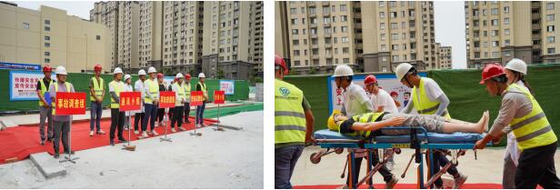 此次演練在公司徽鹽·璟著項目現(xiàn)場進行,參加人員分別組成安全保衛(wèi)組、搶險救援隊、后勤保障組、醫(yī)療救護組、通訊聯(lián)絡組5個應急救援小組,按既定程序進行建筑施工防高墜救援演練。通過此次演練,進一步強化了施工人員的安全生產(chǎn)意識,提高了項目人員落實應急預案、應對突發(fā)事故的能力。