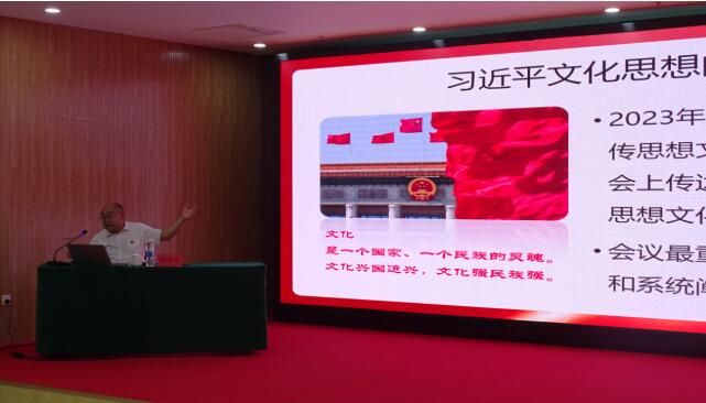 會議同時(shí)邀請膠州市委黨校楊硌堂博士為與會黨員上了題為《深刻領(lǐng)會把握習(xí)近平文化思想,為擔(dān)負(fù)起新的文化使命貢獻(xiàn)智慧力量》主題教育黨課,帶領(lǐng)黨員同志們深入淺出的解讀了習(xí)近平文化思想的重要意義、時(shí)代背景、豐富內(nèi)涵和實(shí)踐要求,讓與會人員受益匪淺,進(jìn)一步提高廣大黨員干部的自身素養(yǎng)和黨性修養(yǎng),愛崗敬業(yè)、主動(dòng)作為,為推動(dòng)企業(yè)和社會經(jīng)濟(jì)和諧穩(wěn)定發(fā)展貢獻(xiàn)智慧和力量。
