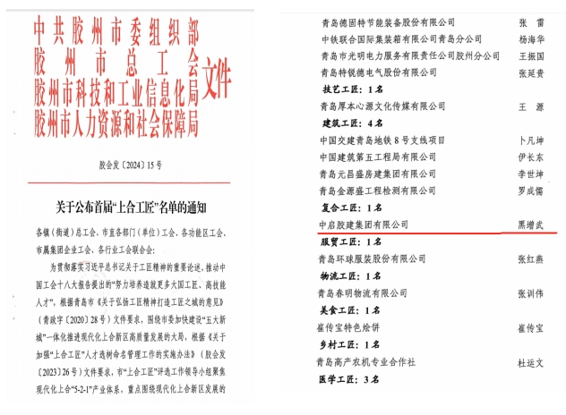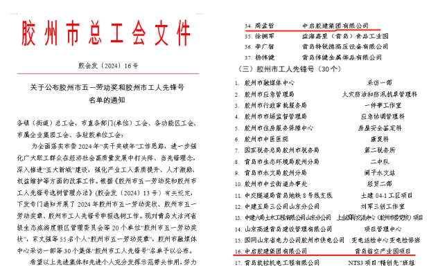 值此“五一”國際勞動節(jié)來臨之際,4月29日上午,膠州市慶?!拔逡弧眹H勞動節(jié)大會暨膠州市總工會第十三屆委員會第二次全體會議在市會議中心四樓多功能廳召開。會上表彰了2024年膠州市獲得各級榮譽的先進集體和個人。集團斬獲多項殊榮,集團黑增武同志榮獲“首屆上合工匠”榮譽稱號,高清同志榮獲“青島工匠”和“青島市五一勞動獎?wù)隆睒s譽稱號,周孟哲同志榮獲“膠州市五一勞動獎?wù)隆睒s譽稱號,青島臨空產(chǎn)業(yè)園項目班組榮獲“膠州市工人先鋒號”稱號。