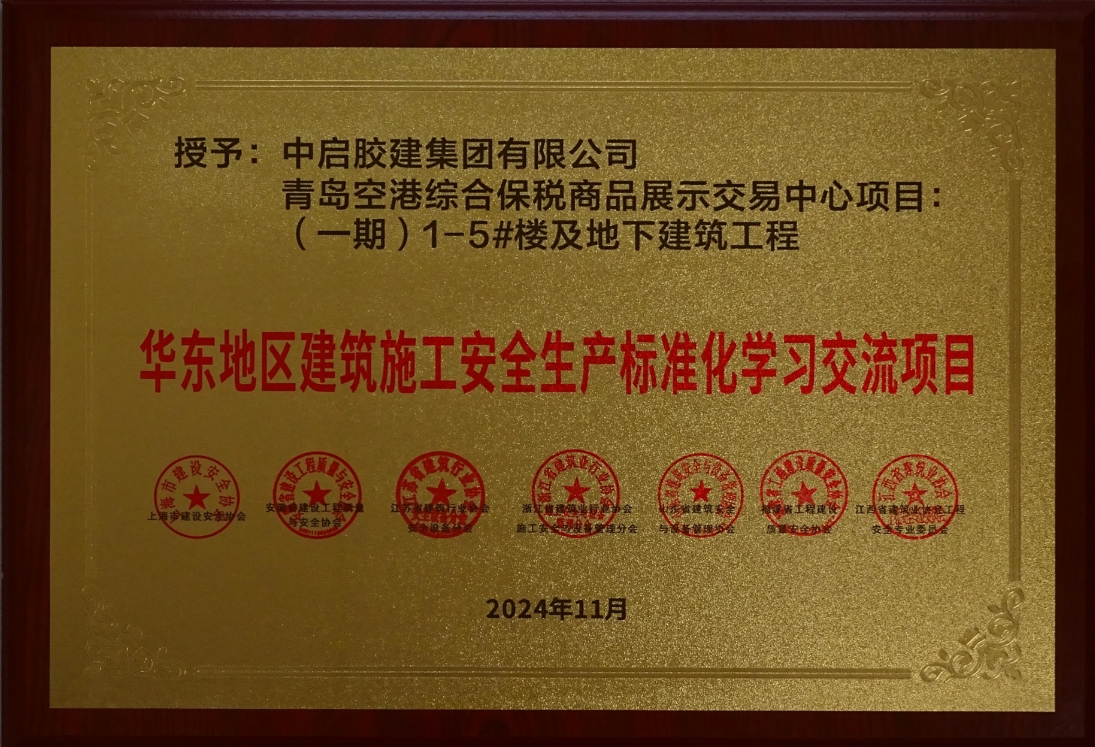 日前,華東地區(qū)建筑安全聯(lián)席會公布了2024年度“華東地區(qū)建筑施工安全生產(chǎn)標(biāo)準(zhǔn)化工地”名單,公司承建的青島空港綜合保稅商品展示交易中心項目(一期)1-5#樓及地下建筑工程,榮獲此項榮譽(yù)。這既是對公司安全生產(chǎn)標(biāo)準(zhǔn)化管理的認(rèn)可,也是對今后持續(xù)嚴(yán)把安全關(guān),爭創(chuàng)精品工程的鞭策。