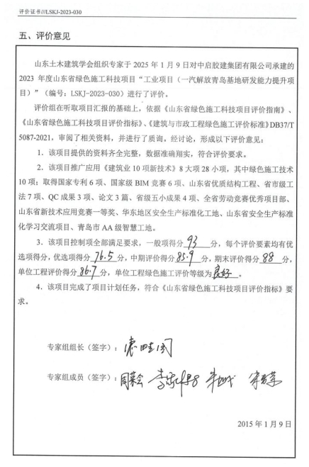近日,山東土木建筑學(xué)會發(fā)布《關(guān)于公布通過驗收評價的山東省綠色施工科技項目的通知》,中啟膠建集團承建的工業(yè)項目(一汽解放青島基地研發(fā)能力提升項目)順利通過山東省綠色施工科技項目驗收評價。