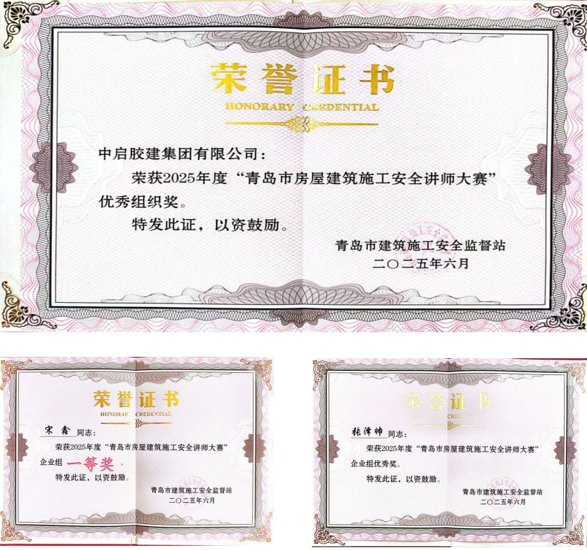 參賽組分為安全管理類、安全技術(shù)類、科技類,涵蓋了建筑施工安全管理、大型設(shè)備安全管理、高處作業(yè)、有限空間等類別。經(jīng)過篩選、預(yù)選、決賽,共評選出企業(yè)優(yōu)秀組織獎(jiǎng)4個(gè),企業(yè)個(gè)人一等獎(jiǎng)2個(gè)、二等獎(jiǎng)4個(gè)、三等獎(jiǎng)6個(gè)、優(yōu)秀獎(jiǎng)20個(gè)。集團(tuán)選送參賽的兩位員工:華東公司宋鑫獲得企業(yè)組一等獎(jiǎng)、膠州公司張澤帥獲得企業(yè)組優(yōu)秀獎(jiǎng)。同時(shí)中啟膠建集團(tuán)有限公司獲得“優(yōu)秀組織獎(jiǎng)”。