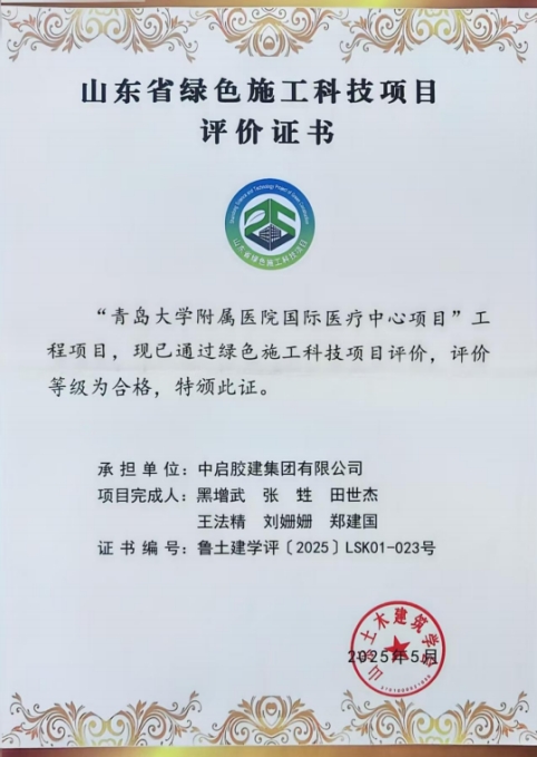 近日,由中啟膠建集團(tuán)建筑七公司負(fù)責(zé)承建的青島大學(xué)附屬醫(yī)院國際醫(yī)療中心項(xiàng)目順利通過山東省綠色施工科技項(xiàng)目評(píng)價(jià)驗(yàn)收。