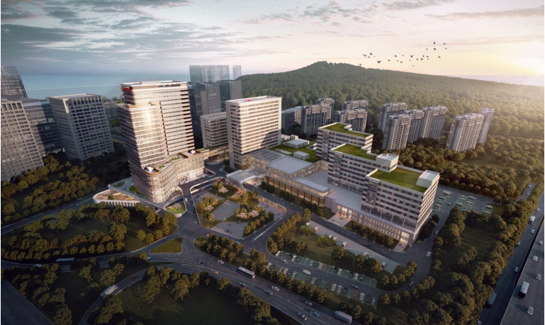 青島大學(xué)附屬醫(yī)院國際醫(yī)療中心,位于青島市嶗山區(qū)海爾路59號(hào),工程總用地面積為14.19萬㎡,總建筑面積為6.63萬㎡ ,其中地上建筑面積53215㎡,地下建筑面積13085 ㎡。地下3 層,地上23層,建筑高度98.55米。工程主樓為框架剪力墻結(jié)構(gòu),裙房為框架結(jié)構(gòu),結(jié)構(gòu)樁基礎(chǔ)。項(xiàng)目位于院區(qū)東側(cè),西側(cè)緊鄰門診病房綜合樓、綜合病房樓及門診醫(yī)技樓,東側(cè)緊鄰院區(qū)污水處理站,北側(cè)與擬建的院區(qū)中心廣場(chǎng)智能車庫毗鄰,建設(shè)用地范圍約5000 平方米。國際醫(yī)療中心規(guī)劃床位286張。主要功能為國際門診、醫(yī)技、體檢中心、預(yù)防保健、病房等。該項(xiàng)目于2021年立項(xiàng)山東省綠色施工科技項(xiàng)目,經(jīng)過三年的建設(shè),順利完成了各項(xiàng)綠色施工目標(biāo)達(dá)到較好的科技示范效果。