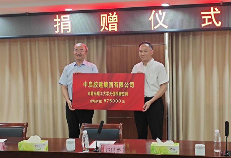 7月25日上午,中啟膠建集團有限公司向青島理工大學捐贈空調儀式在的青島理工大學圖書科技樓1908會議室隆重舉行。中啟膠建集團董事長、總經(jīng)理郭道盛,青島理工大學黨委常委、副校長郭建鋒出席儀式并致辭。公司董事、副總經(jīng)理、華東公司經(jīng)理徐奎學、華東公司副經(jīng)理周孟哲,青島理工大學繼續(xù)教育學院黨總支書記孫川三、資產(chǎn)與實驗室管理處處長劉盛東、基本建設處副處長張國昌等領導參加儀式。