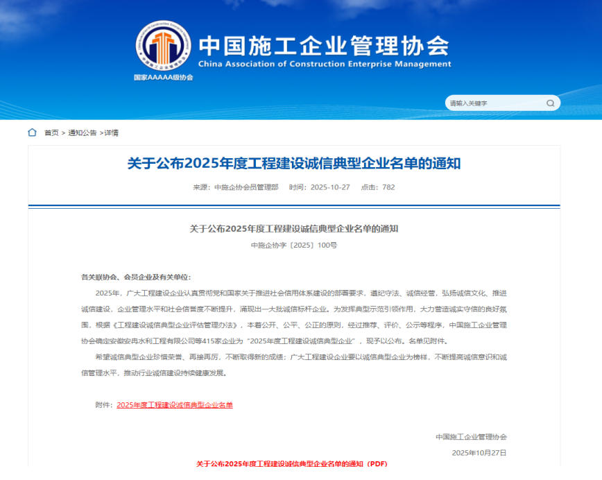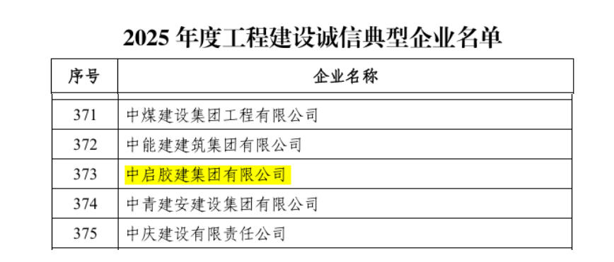 近日,中國(guó)施工企業(yè)管理協(xié)會(huì)公布“2025年度工程建設(shè)誠(chéng)信典型企業(yè)”名單。中啟膠建集團(tuán)有限公司憑借長(zhǎng)期以來(lái)誠(chéng)信經(jīng)營(yíng)、合規(guī)管理及品質(zhì)服務(wù)等方面的突出表現(xiàn),成功獲評(píng)“2025年度工程建設(shè)誠(chéng)信典型企業(yè)”。獲得工程建設(shè)誠(chéng)信典型企業(yè),標(biāo)志著公司在工程建設(shè)領(lǐng)域的誠(chéng)信、專業(yè)能力和社會(huì)責(zé)任得到了行業(yè)的廣泛認(rèn)可,增強(qiáng)了公司的信譽(yù)度和公信力。對(duì)公司長(zhǎng)遠(yuǎn)發(fā)展和業(yè)務(wù)擴(kuò)展具有積極的促進(jìn)作用。