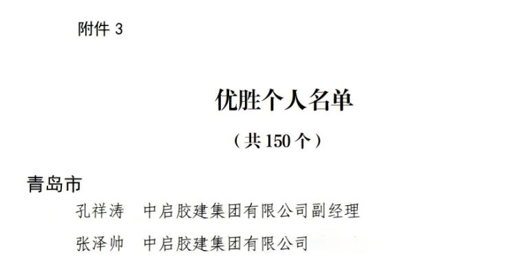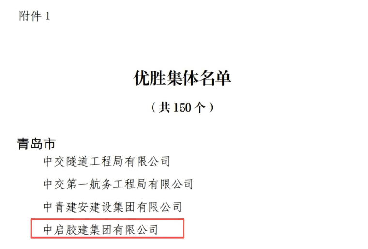 12月10日,山東省住房和城鄉(xiāng)建設(shè)廳官網(wǎng)公布了2025年度全省住房城鄉(xiāng)建設(shè)系統(tǒng)重點(diǎn)工程創(chuàng)新創(chuàng)優(yōu)勞動(dòng)競(jìng)賽獲獎(jiǎng)名單,中啟膠建集團(tuán)有限公司榮獲“優(yōu)勝集體”稱(chēng)號(hào),賽飛 EB-PVD 項(xiàng)目部和中國(guó)海洋大學(xué)海洋科教創(chuàng)新園區(qū)(西海岸校區(qū))智慧海洋樓工程項(xiàng)目部被評(píng)為“優(yōu)勝項(xiàng)目部”稱(chēng)號(hào),華東公司孔祥濤和膠州公司張澤帥評(píng)為“優(yōu)勝個(gè)人”稱(chēng)號(hào)。