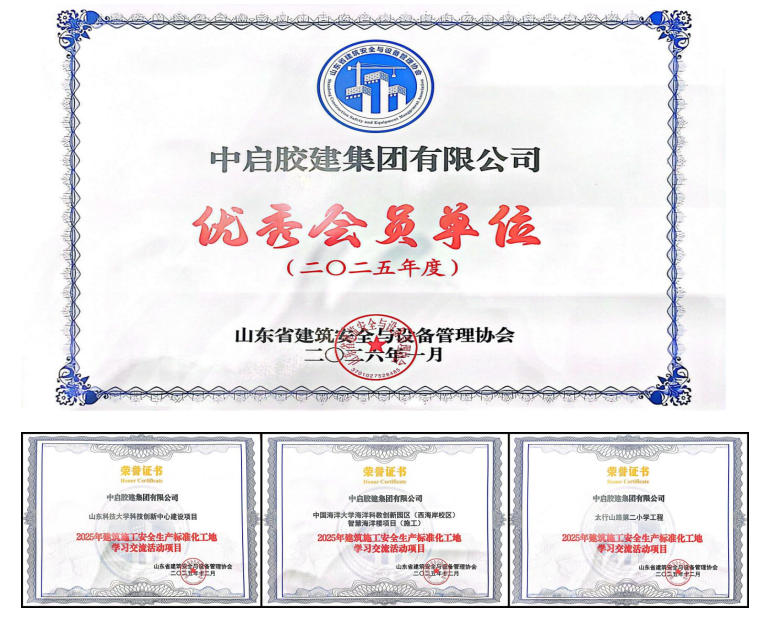 2026年1月27日,在山東省建筑安全與設(shè)備管理協(xié)會五屆四次理事會議上。公司憑借其在建筑安全生產(chǎn)管理與標(biāo)準(zhǔn)化實踐等方面的卓越成效,榮獲協(xié)會頒發(fā)的“2025年度優(yōu)秀會員單位”,同時,公司承建的中國海洋大學(xué)海洋科教創(chuàng)新園區(qū)(西海岸校區(qū))智慧海洋樓項目、山東科技大學(xué)科技創(chuàng)新中心建設(shè)項目、太行山路第二小學(xué)工程項目被評為“2025年建筑施工安全生產(chǎn)標(biāo)準(zhǔn)化工地學(xué)習(xí)交流活動項目”,贏得了與會領(lǐng)導(dǎo)、專家及同業(yè)代表的高度贊譽。